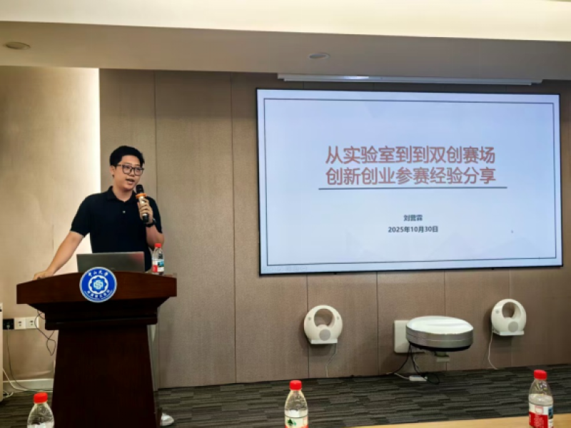 在讲座中,刘营霖博士以荣获中国国际大学生创新大赛金奖的项目《智愈心生》为案例,生动阐释了该项目的研发背景、社会意义、创新优势及团队建设历程,多维度展现了创新创业大赛对个人成长、团队协作及社会价值创造的深远影响。此外,他还围绕参赛前期准备、项目PPT制作技巧、现场路演策略以及个人参赛感悟等方面,进行了系统而深入的分享。其内容详实、讲解透彻,令在场师生深受启发。