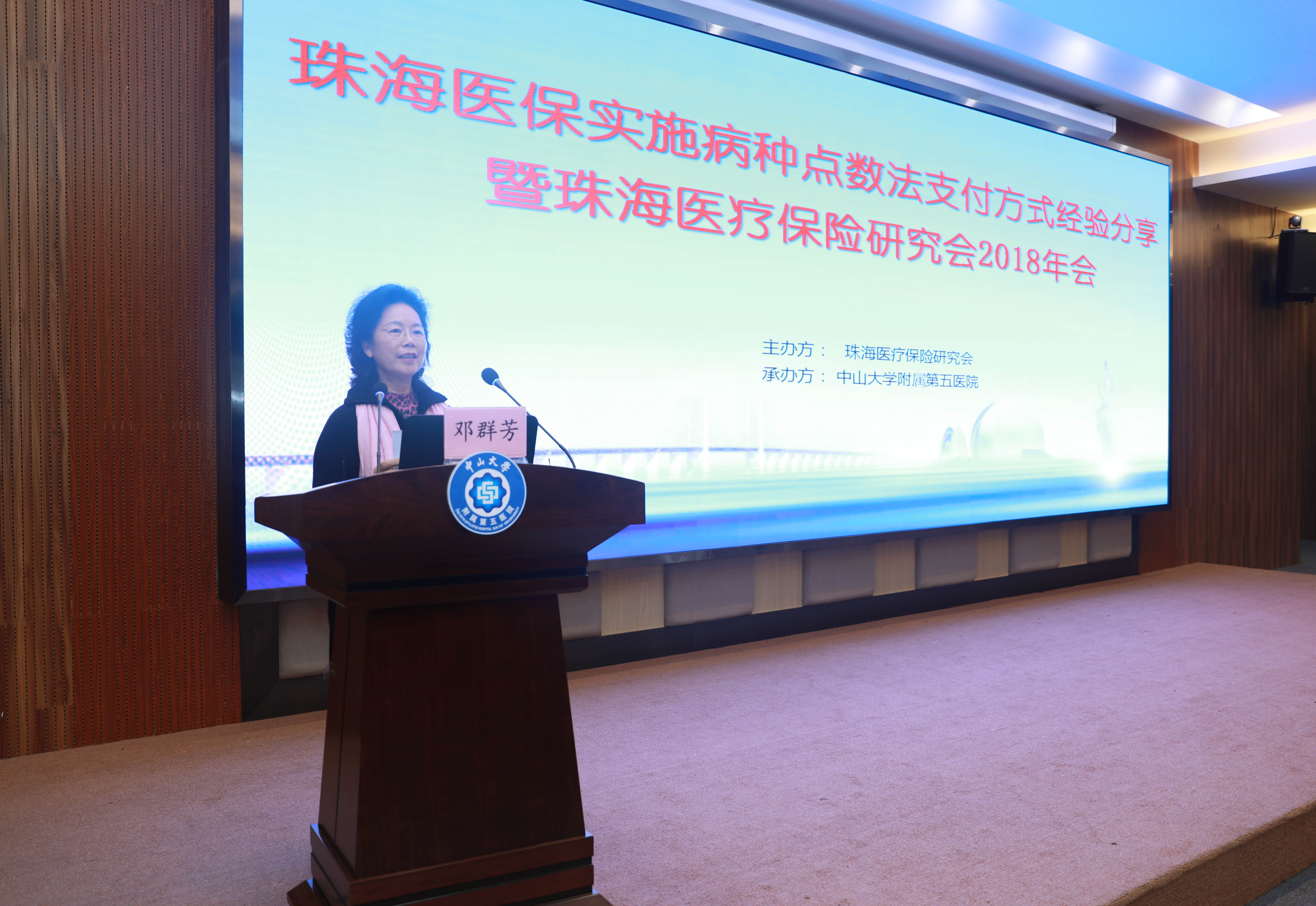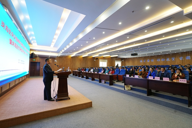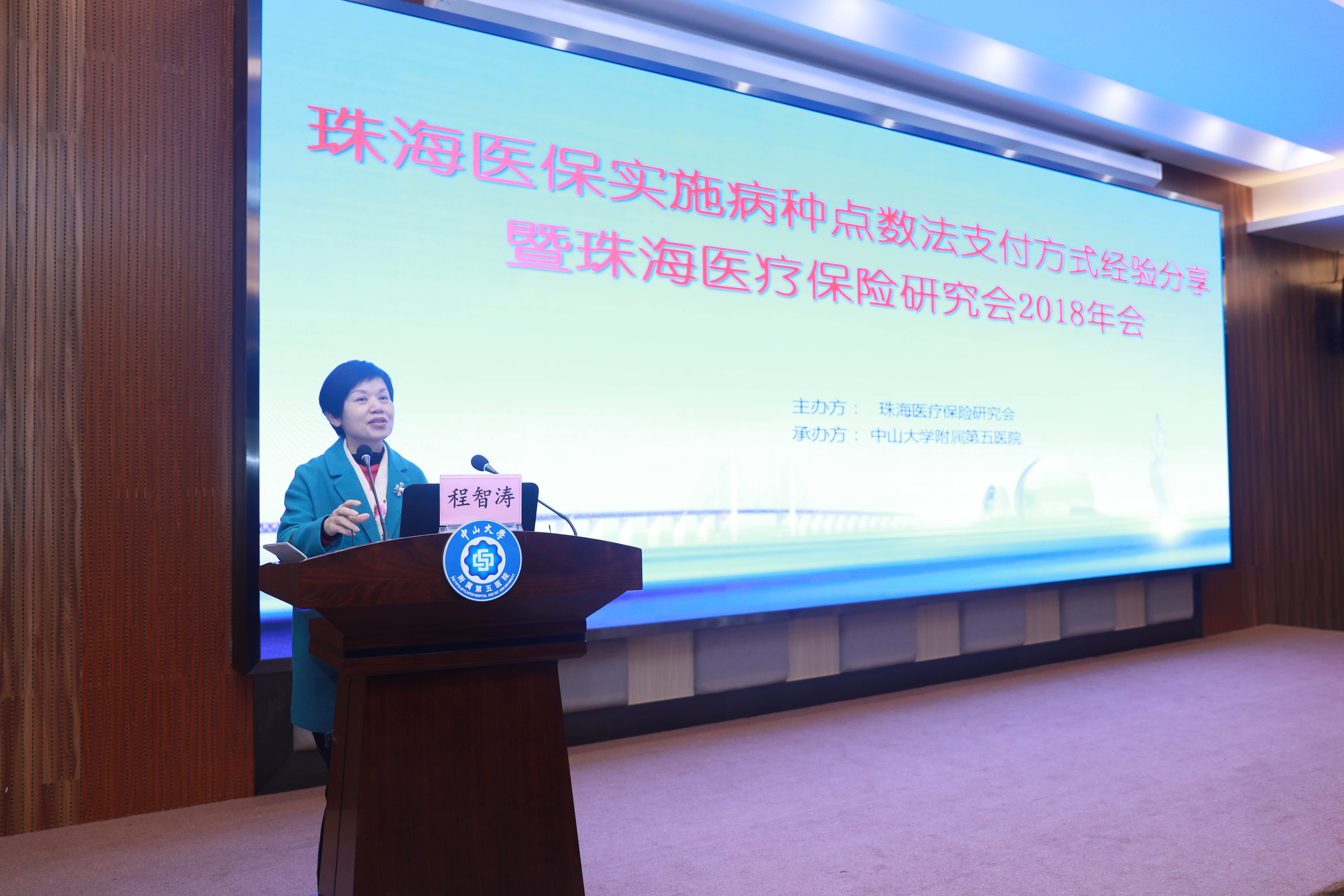 珠海市关工委副主任、原珠海市副市长邓群芳,珠海市人社局副局长程智涛,珠海市卫计局医政科科长沈向东,珠海市社保中心副主任徐劲光,珠海医疗保险研究会秘书长张邹,中山大学附属第一医院医保办主任马路宁,中国医疗保险研究会理事、广东省医疗协会医保分会副主任委员郑彥如,我院副院长李中和,珠海市内近40家医保定点医院的100余名医保领域工作人员参加了会议。